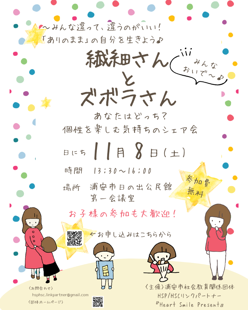 私達、HSP/HSCリンクパートナー『Heart Smile Present』は千葉県浦安市を拠点にHSP(Highly Sensitive Person)及びHSC(Highly Sensitive Child)という、